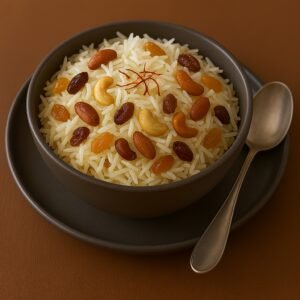 Subtle sweetness, warm spices, and vibrant garnish of dry fruits